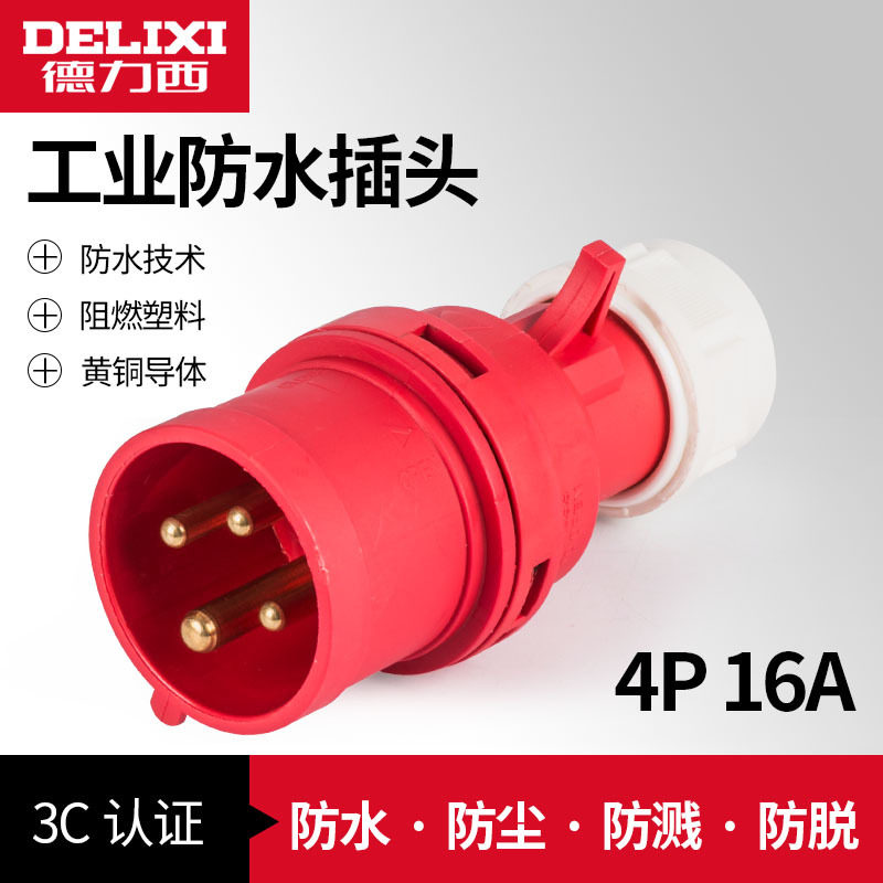 Delixi aviation industry plug socket 3 4 5-core three-phase electric 380v male connector waterproof 16a 32a