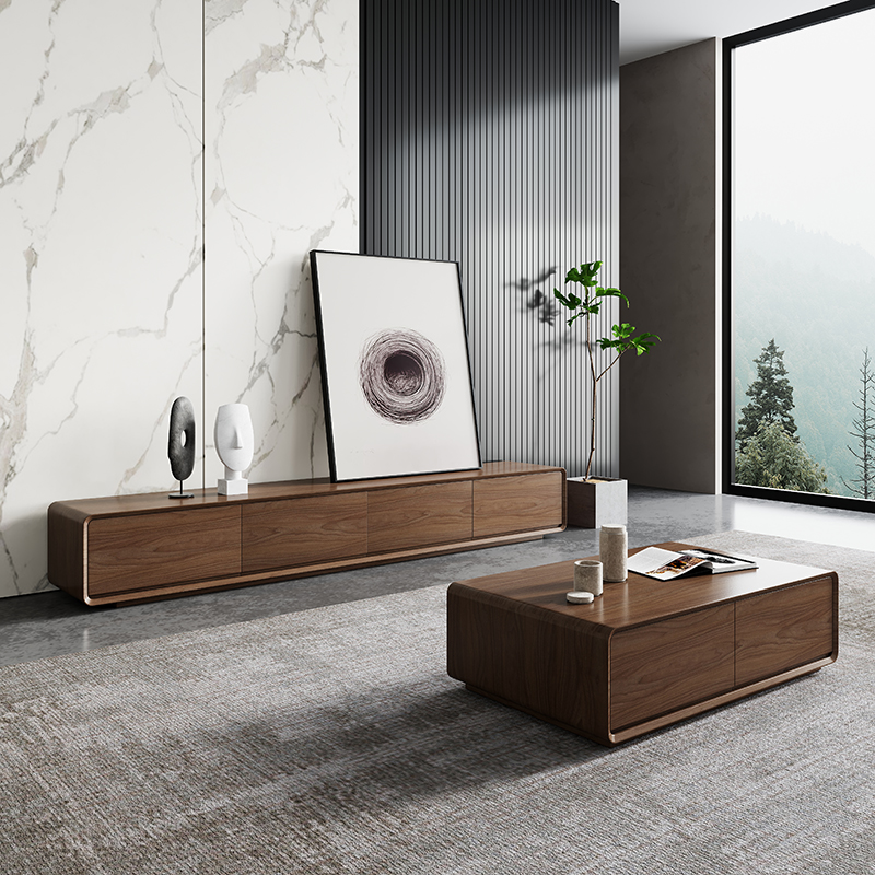 Nordic TV cabinet tea combined walnut living room furniture small household TV cabinet