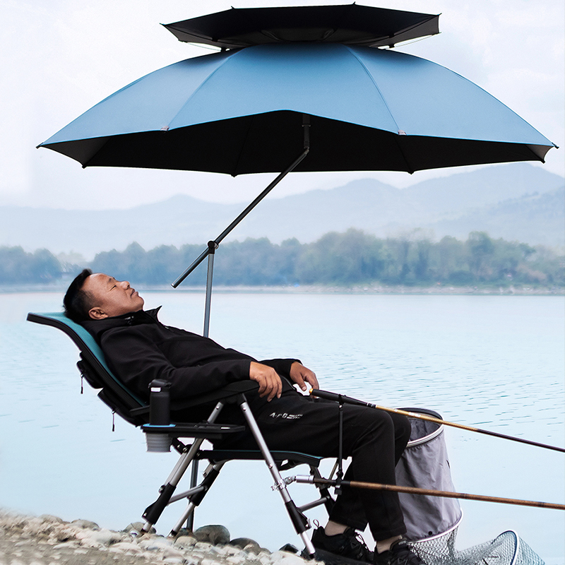 2.4m blue (double deck double bend) (3rd generation self-locking lower pole + ground insert + umbrella bag + integrated rod bag blue )