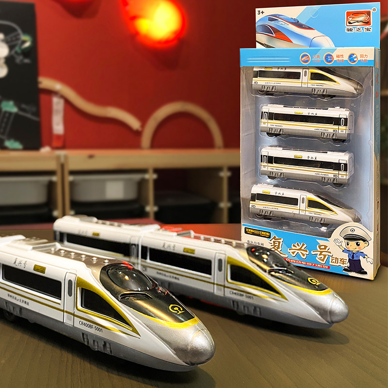 3-year-old children's city traffic bus High-speed rail train toy EMU model High-speed rail Fuxing Pull-back car magnetism