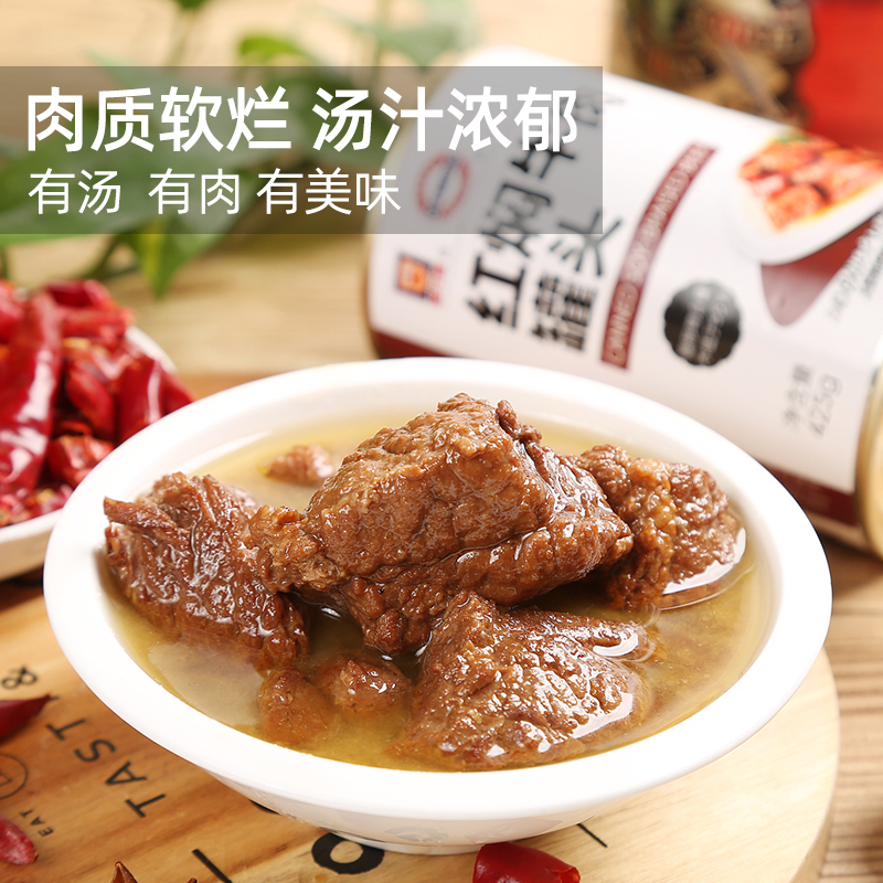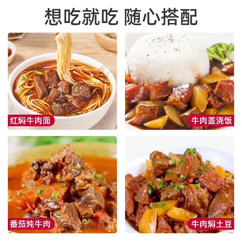 Beef water, vegetable oil, white sugar, soy sauce, edible salt, liquor, MSG, spices, etc. The actual information on the product packaging shall prevail