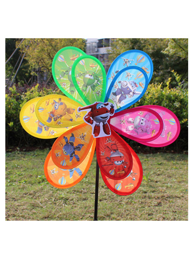 Ground Stall Hot Selling Large Double Plastic Windmill Outdoor Children Toy Cartoon Pattern Seven Colorful Windmill Decorations