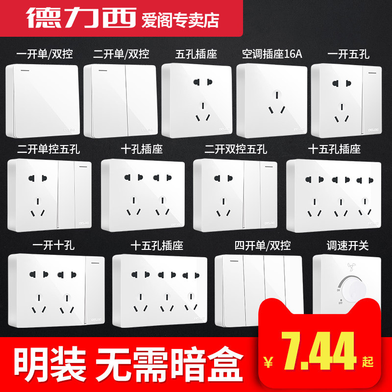 Surface mounted five holes Surface mounted seven holes One open double control five holes two open double control five holes three holes 16A air conditioning socket one open three holes ten holes fifteen hole socket one open single control one open double control two open single control two open double control Three single control