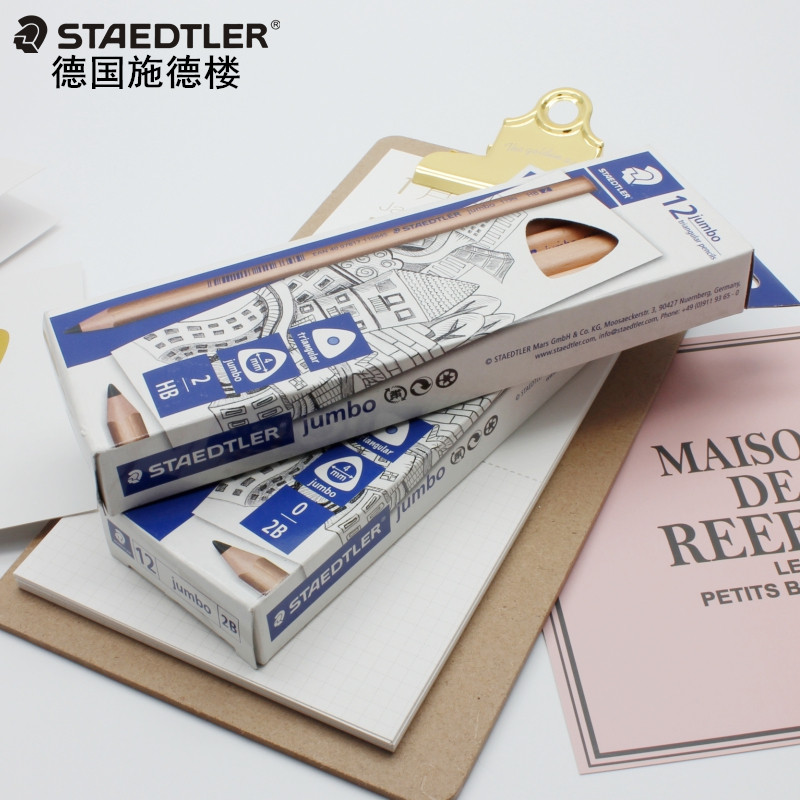 Germany STAEDTLER STAEDTLER 119N-HB thick rod student triangle pencil Wooden rod easy grip children's kindergarten drawing pencil sketch drawing Imported pencil 12 pcs 2B