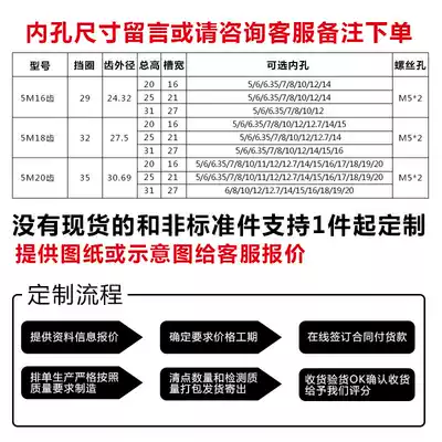 Check the details of the inner hole size table before shooting. Some directly took a message without contacting customer service 5M16 teeth (adapted bandwidth 15mm) round inner hole 5M16 teeth (adapted bandwidth 15mm)