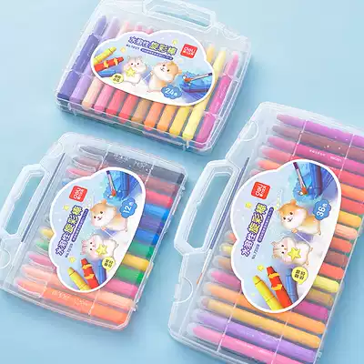 Delei rotary oil painting stick 24 color 36 color 48 color crayon water soluble washable children's drawing pen set kindergarten color pen colorful color painting baby pen color oil stick