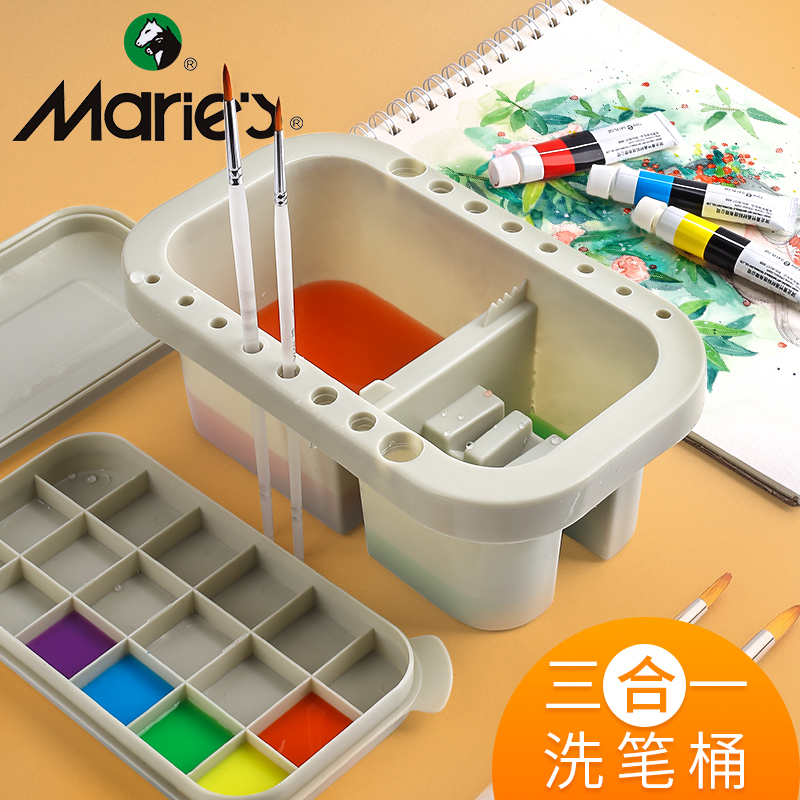 Mali Multifunction Wash Pen Bucket Water Powder Keg Watercolor Painting with color bucket Painting and paintbrush students use easy and easy