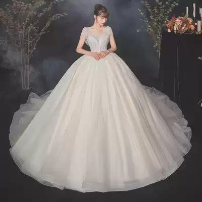 Main wedding dress 2021 new bride big tailing luxury French Light Super immortal cover thick arm summer