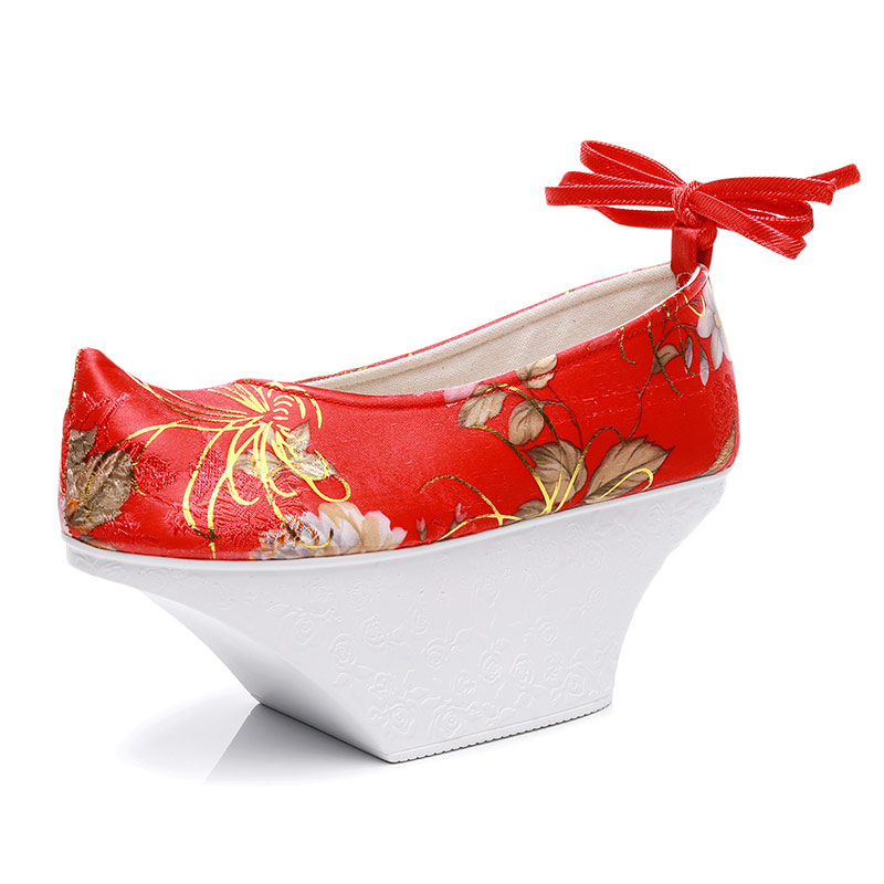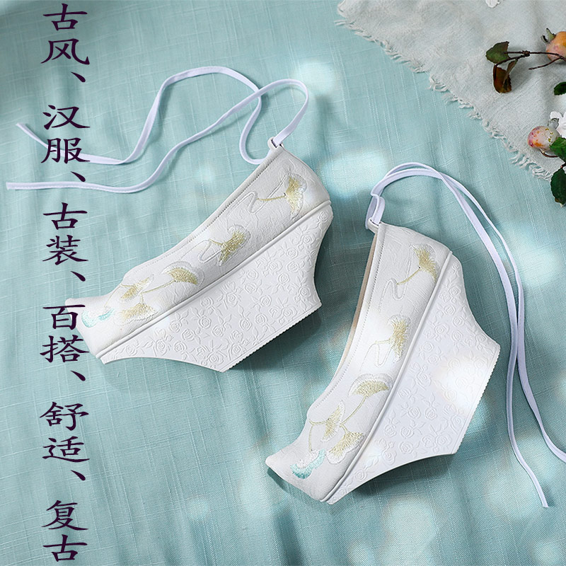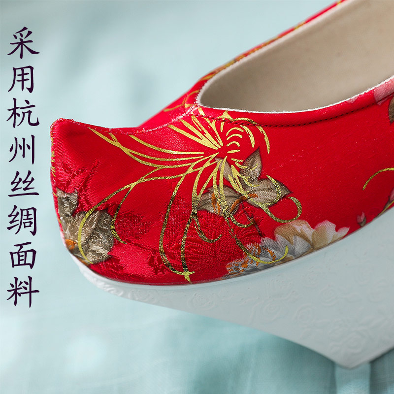 Original Hanfu women's shoes, ancient flower pot shoes, ginger shoes, Ming-made ancient style high-heeled shoes, ancient costumes, bow shoes, embroidered shoes