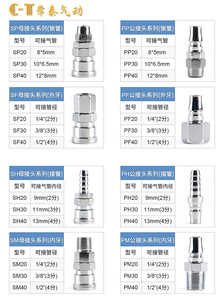 C-type quick connector air compressor pneumatic hose oxygen tube woodworking tool male and female head quick plug SP20 PP20