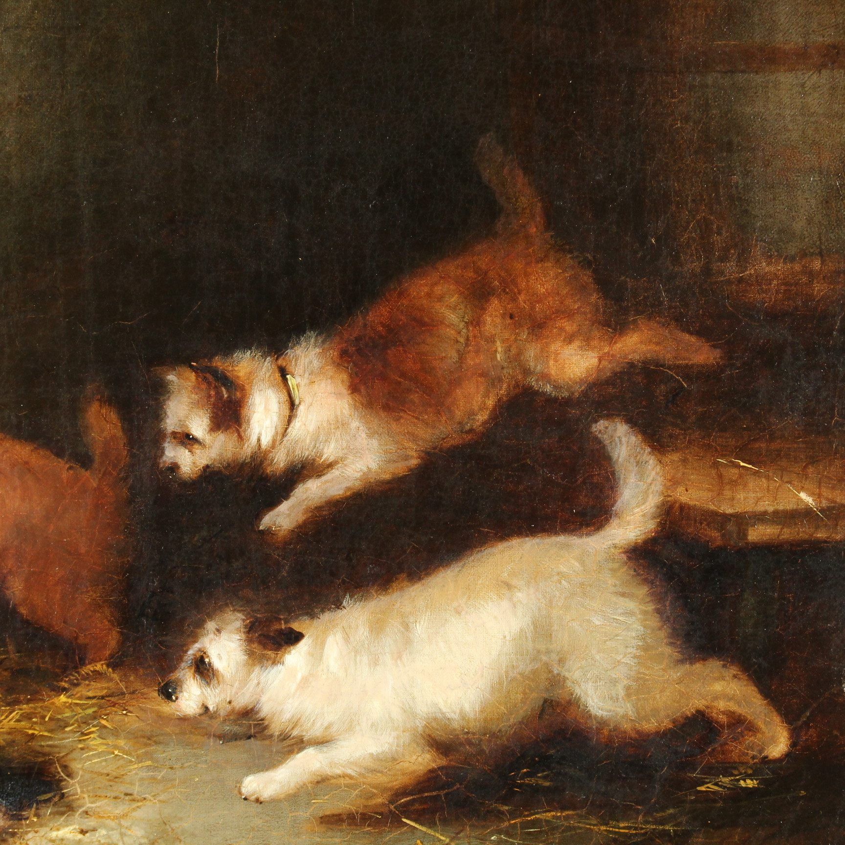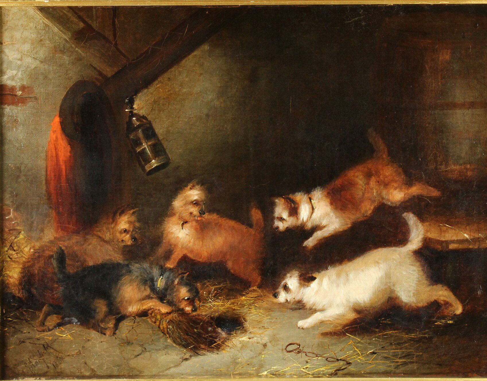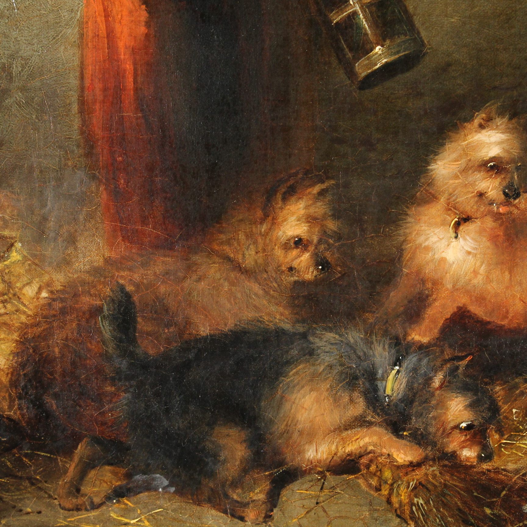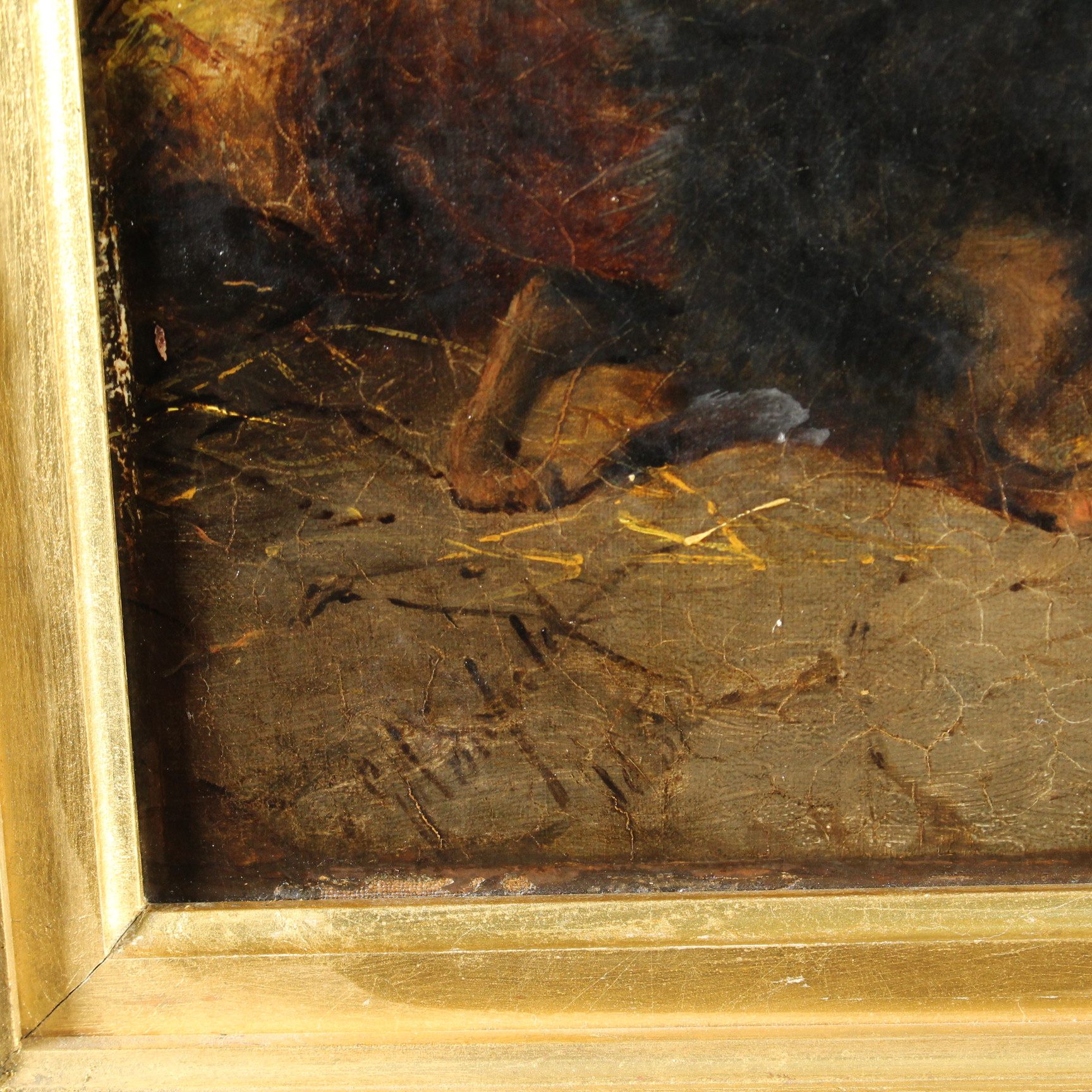 Royal Lion Fort European Antique Oil Painting Playing Puppy Author George Armsfield