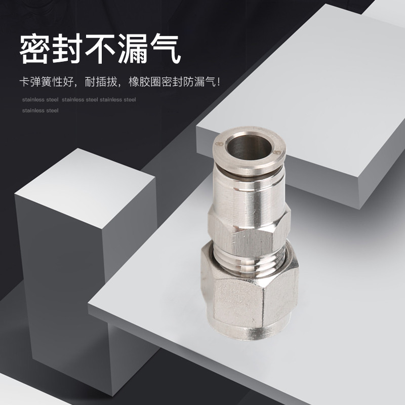 Pneumatic connector 304 stainless steel PZ straight-through card sleeve quick-insert air pipe connector throttle valve quick interchange connector