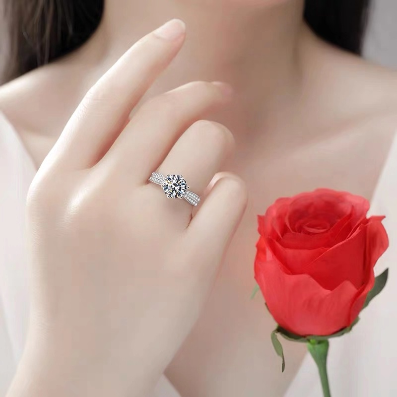Simulation diamond ring female PT950 platinum luxury diamond moissanite one carat ring star queen six-claw female ring