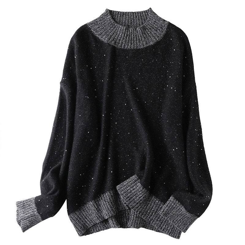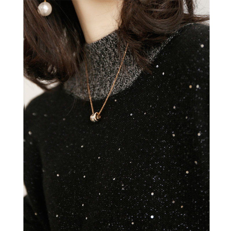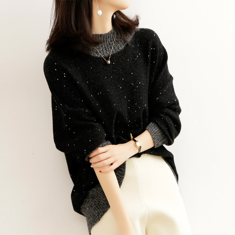 2020 new bright sheet round neckline jacket head wool-knitted sweatshirt female undershirt with a soft glutinous pro-Taobao
