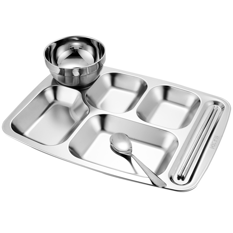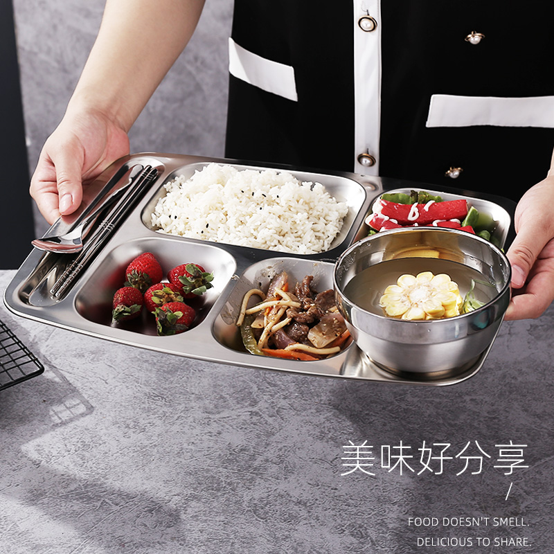 Dinner plate 304 Stainless Steel Split home Dinner Plate Students Adult Plate Commercial Staff Dishes Canteen Snack Dish