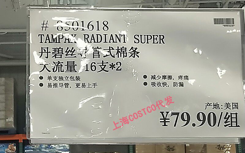 Shanghai costco US imports Tampax Dan Bess tampon with invisible catheter-style sanitary cotton