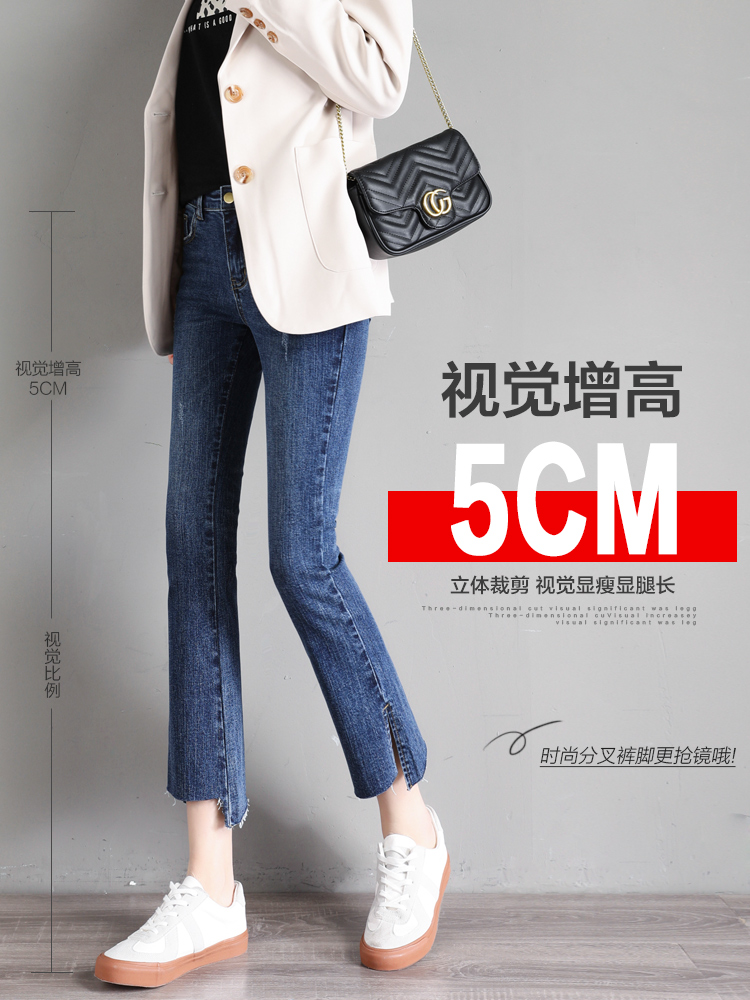 Korean high-waisted jeans women's straight loose autumn 2021 New thin and versatile wide-legged micro-horn pants