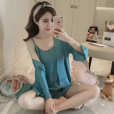 Pajamas female summer short sleeve Ice Silk sexy Korean version of thin three-piece sling summer student Silk Home suit suit