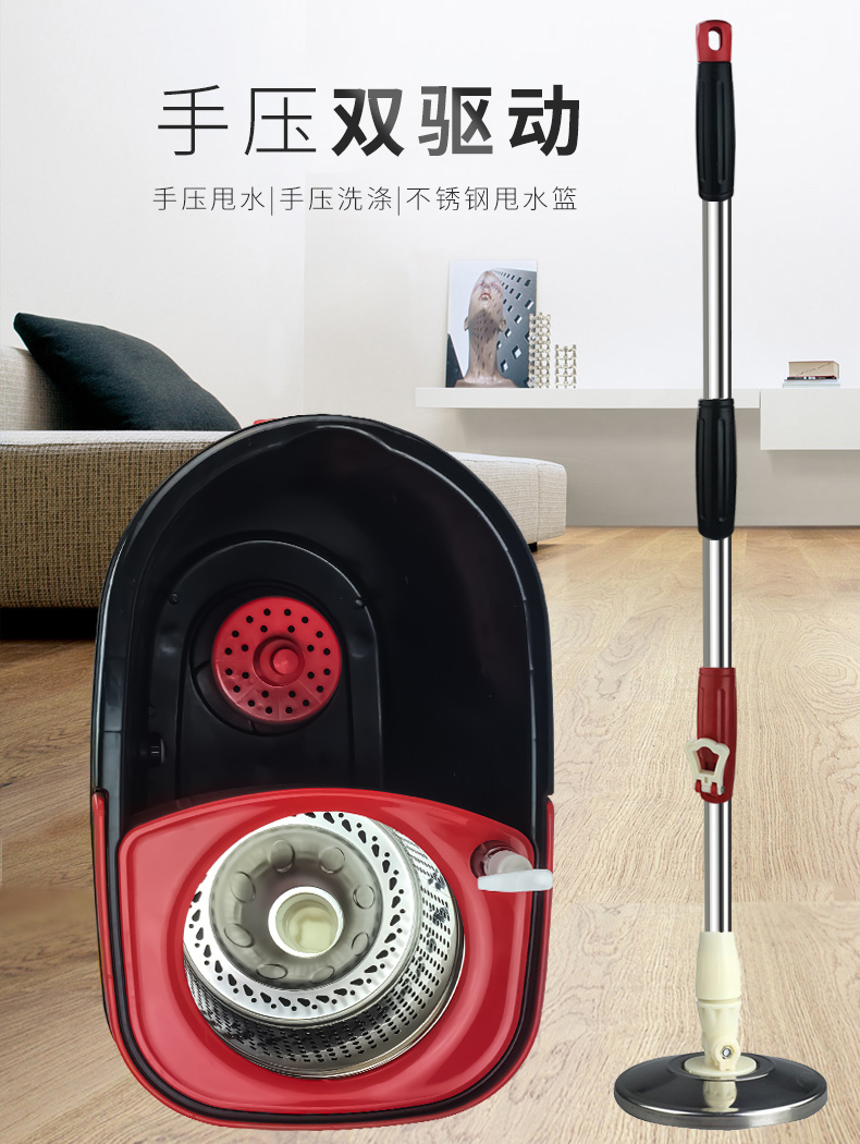 Youyang rotary mop handle press mop bucket good god mop bucket water stainless steel wood floor double drive household