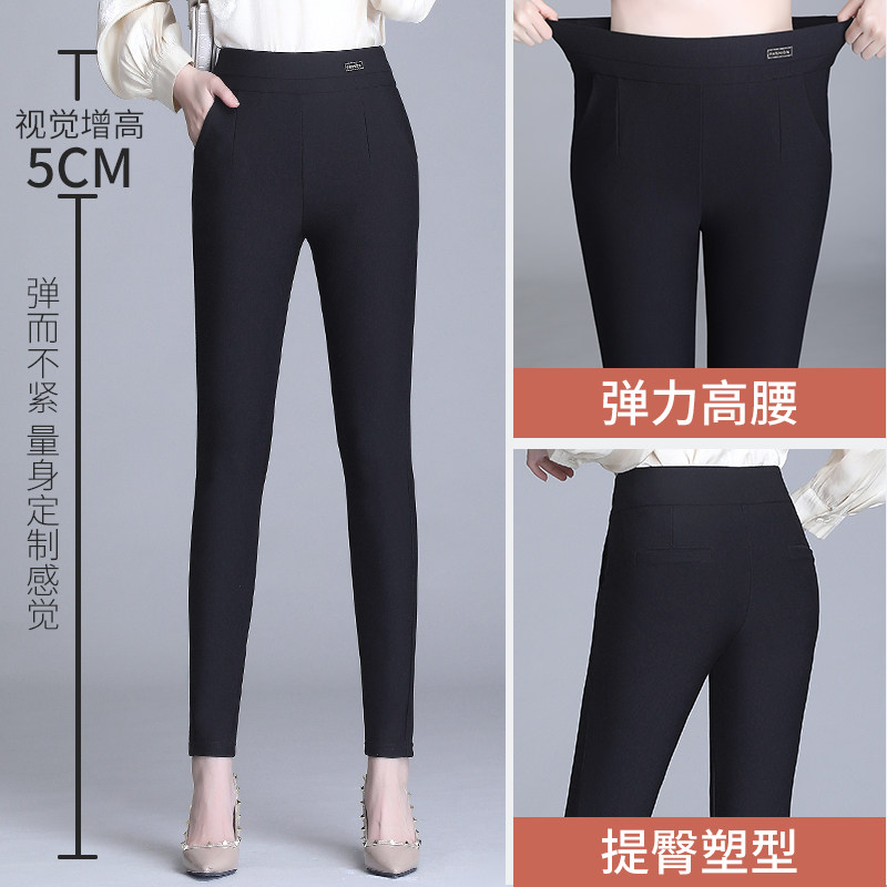 Hengyuan Xiang Gao waist internal lap pants woman outside wearing spring thin section 100 lap small foot 90% pants black with slim fit and long pants