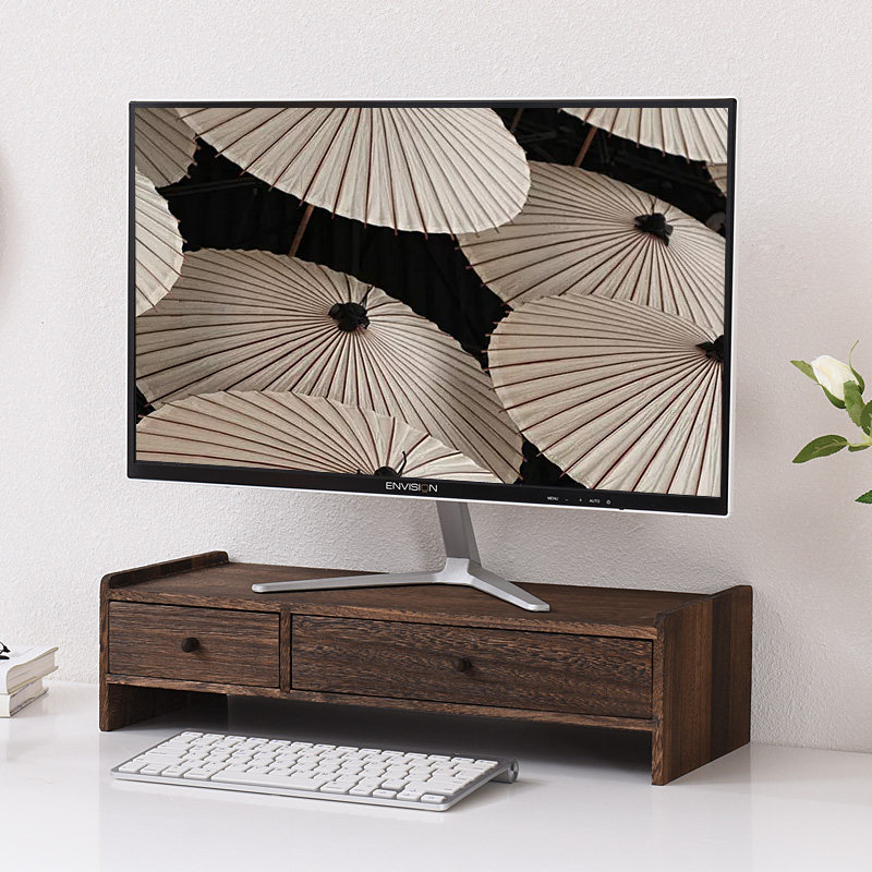 Computer screen heightened drawer neck guard artifact display base rack solid wood desktop storage box office