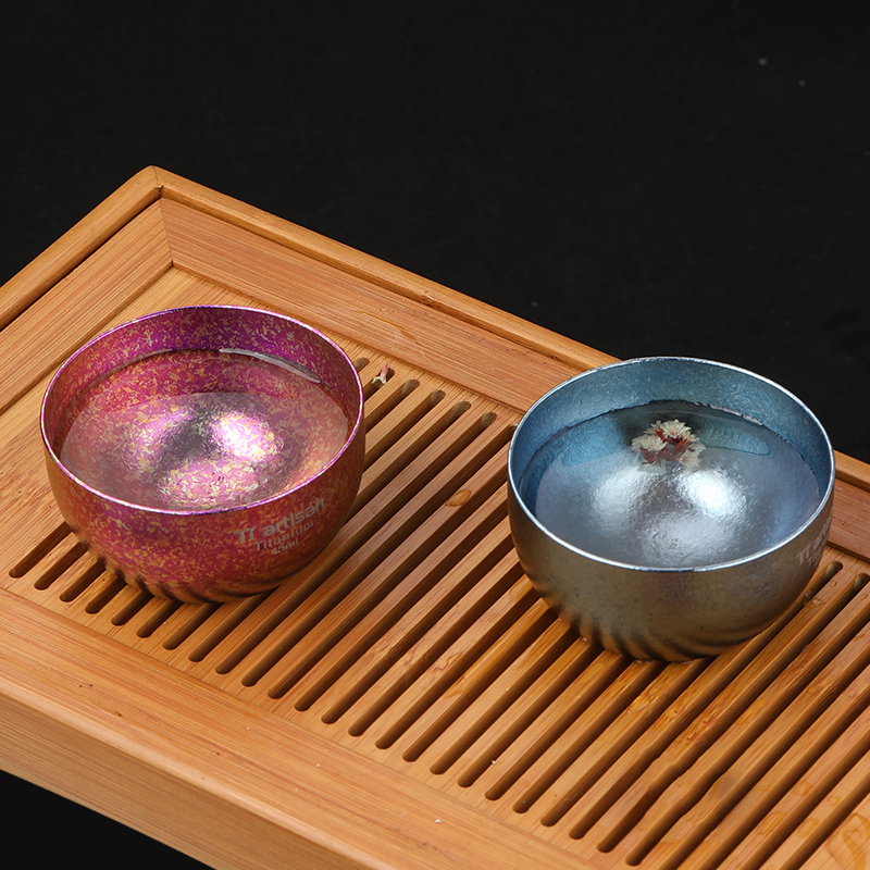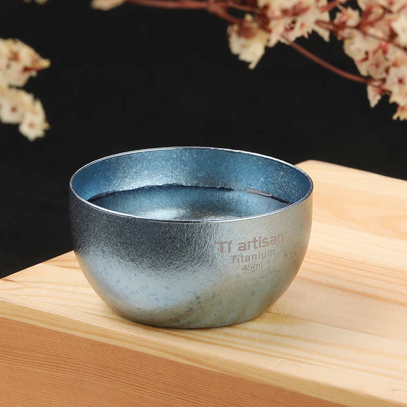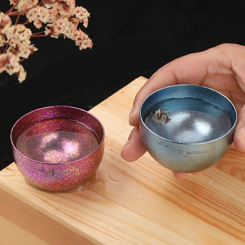 Titanium artisan outdoor portable pure titanium double layer small tea cup ice flower color titanium tea bowl tea tea bowl Master's cup wine glass Ta8743-Taobao