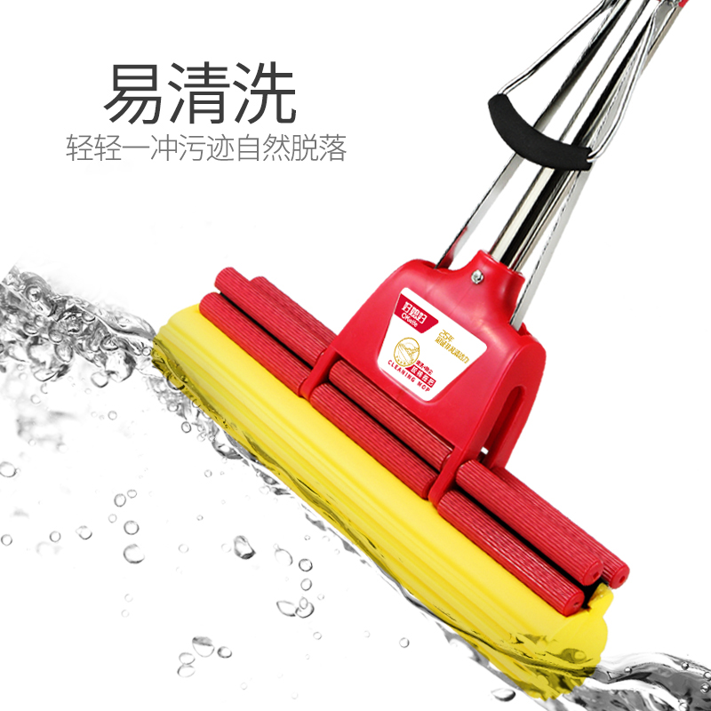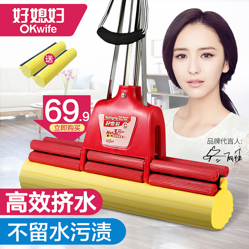 Good daughter-in-law sponge mop 33cm large number of water suction mop head home with roller-type squeeze water free hand washing rubber cotton mop