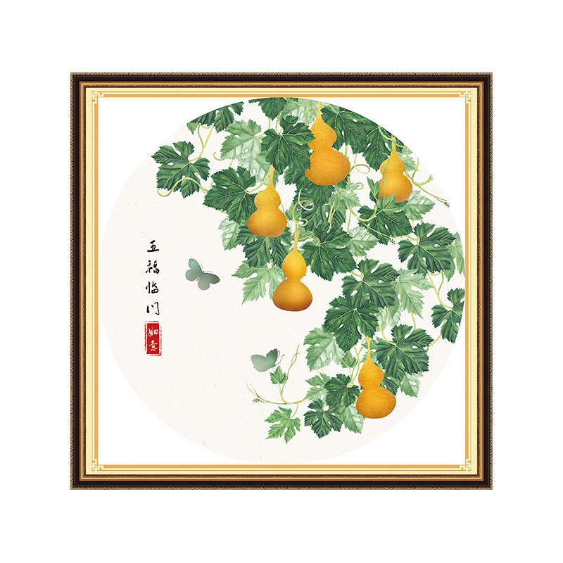 Cross embroidered 2021 new embroidered Wufu Linmento gourd cross embroidered living-room with small piece of folkway to be embroidered by hand