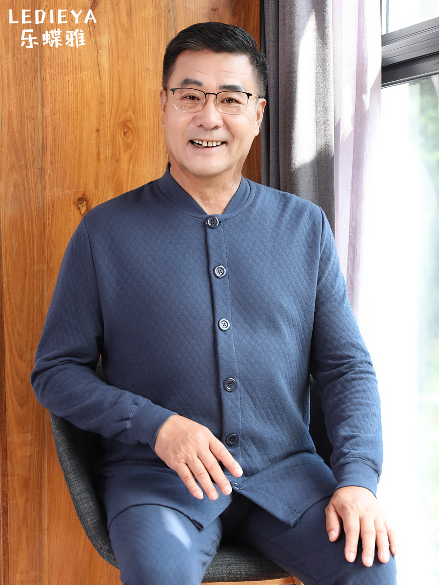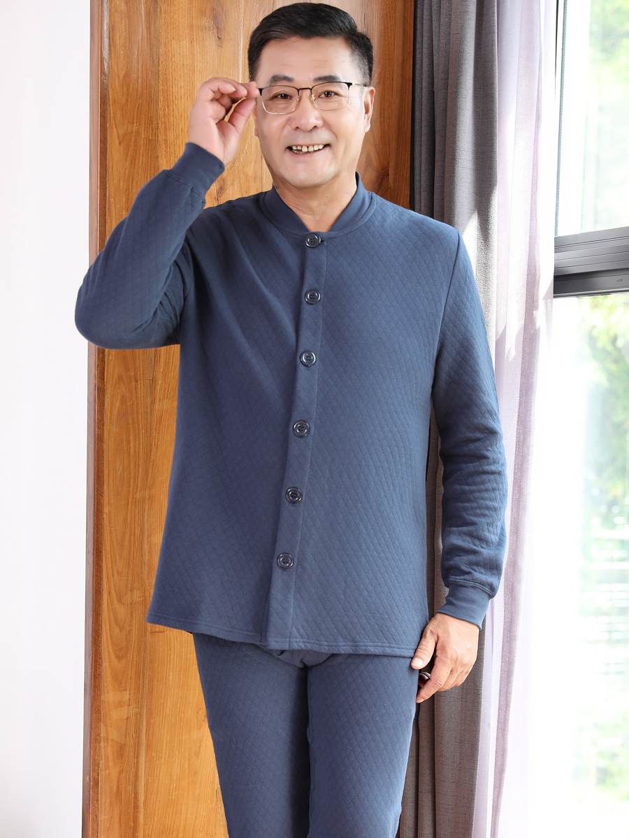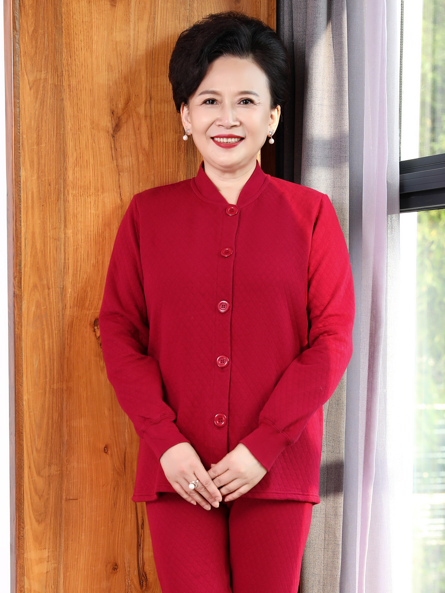 Middle-aged and elderly women's warm underwear women's quilted thick cardigan mother's autumn clothes and long johns suit grandma winter clothes