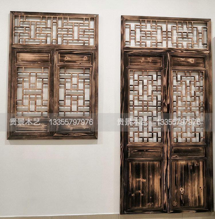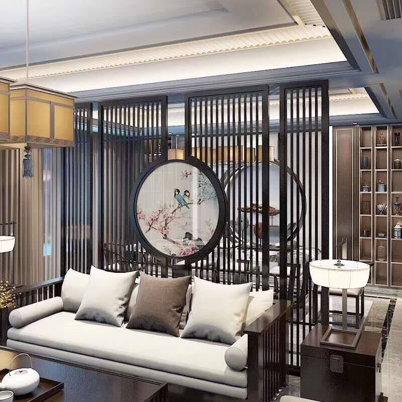East Yang Wood Carving New Chinese Style TV Background Wall Decoration Solid Wood Flower Lattice Border Hollowed-out Partition Imitation Antique living room