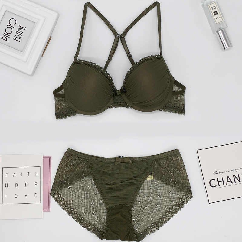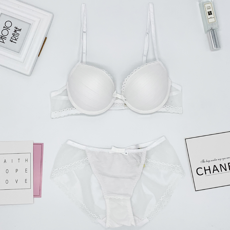2020 Autumn and Winter la lingerie women's sexy double breasted underwear underwear set 3 4 beautiful back Korean bra