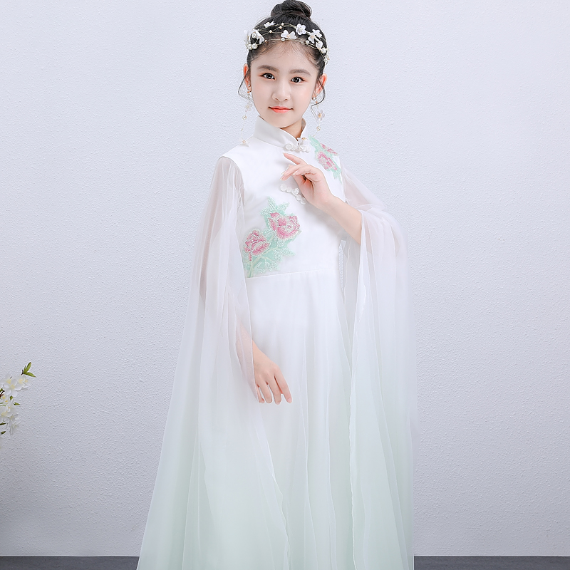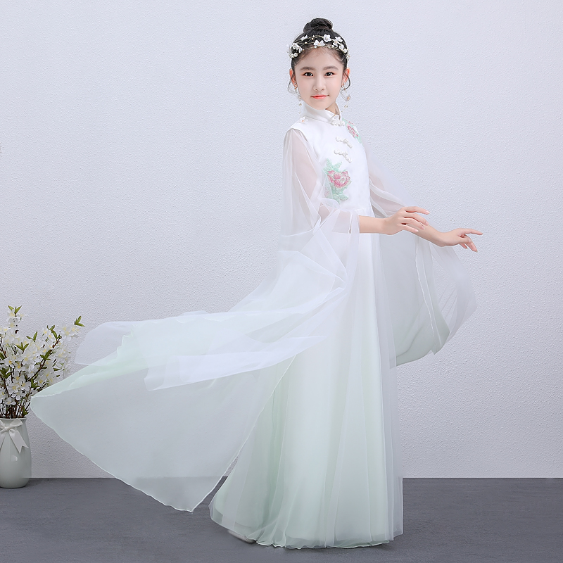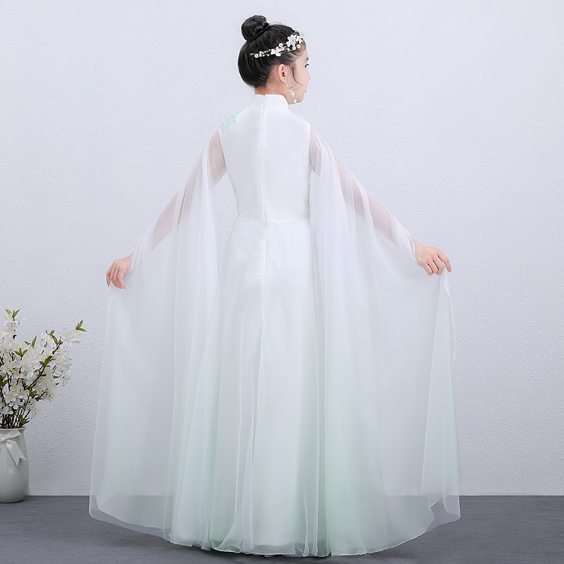 2020 new zither costume Chinese style cheongsam stand collar design erhu pipa folk music stage costume