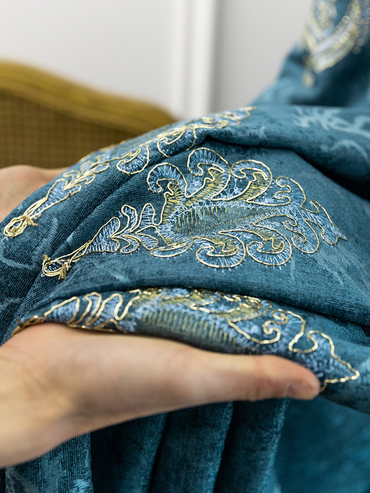 Full blackout curtain finished product simple and modern 2022 popular European-style curtain head bedroom high-end popular jacquard embossed