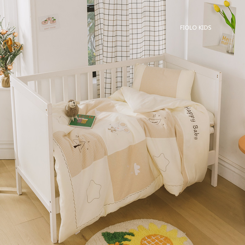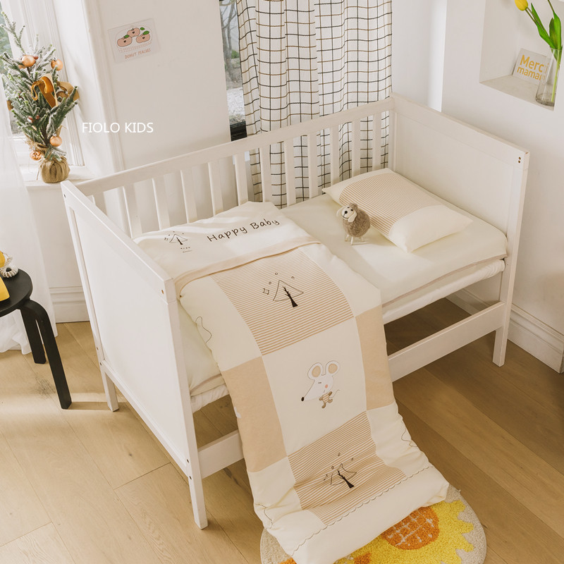 Class A cotton soft knitted cotton baby three-piece kindergarten Tianzhu cotton children's bedding quilt cover cushion pillow case