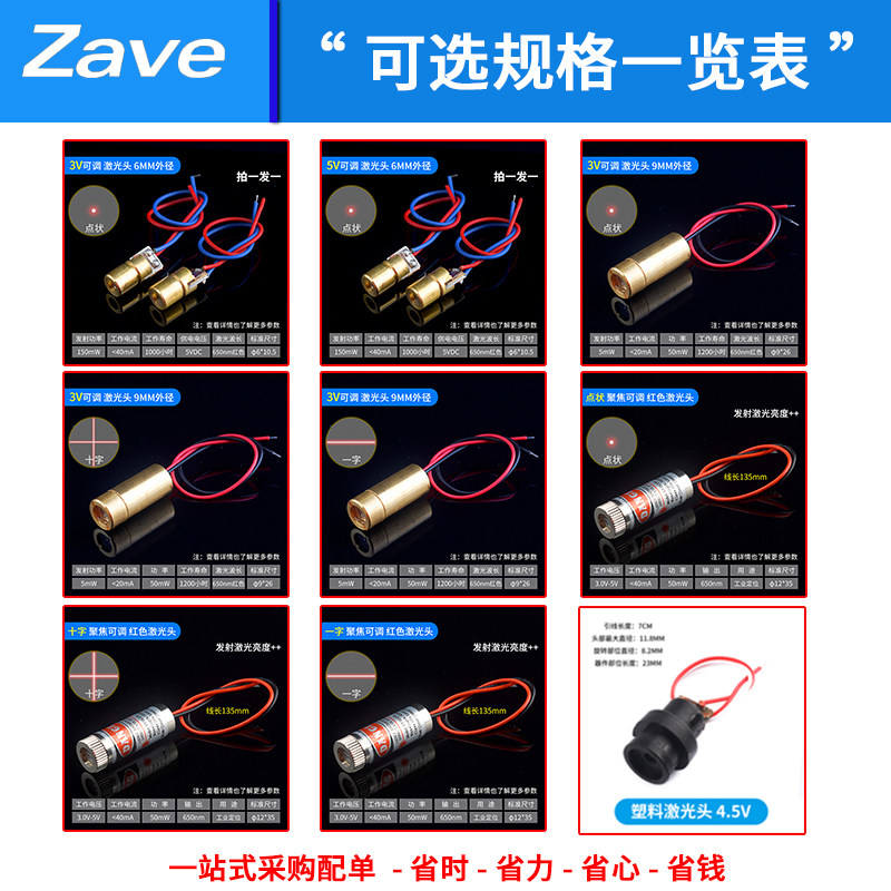 3V Adjustable 6MM Dot (2pcs) 5V Adjustable 6MM Dot (2pcs) 9MM Dot (1pcs) 9MM Cross (1pcs) 9MM 1pcs 12MM Dots (1pcs) 12MM Crosses (1pcs) 12MM 1pcs