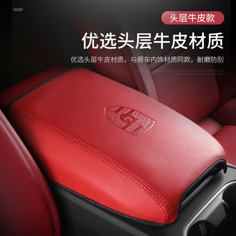 Dedicated for Porsche New Cayenne Embossed Armrest Box Set New Cayenne Interior Modification Protective Leather Cover