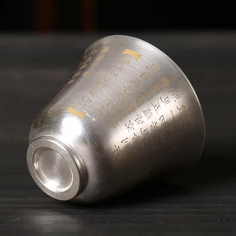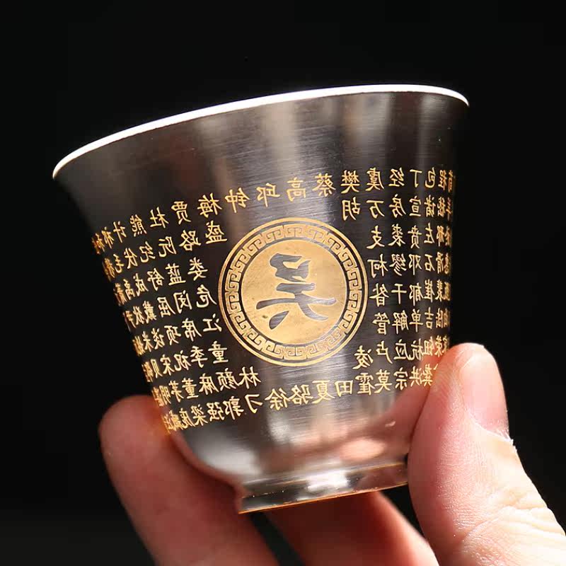 Silver inlaid tea cup 999 pure handmade sterling silver cup tea maker tea set ceramic gilt silver tea cup heart sutra cup master cup