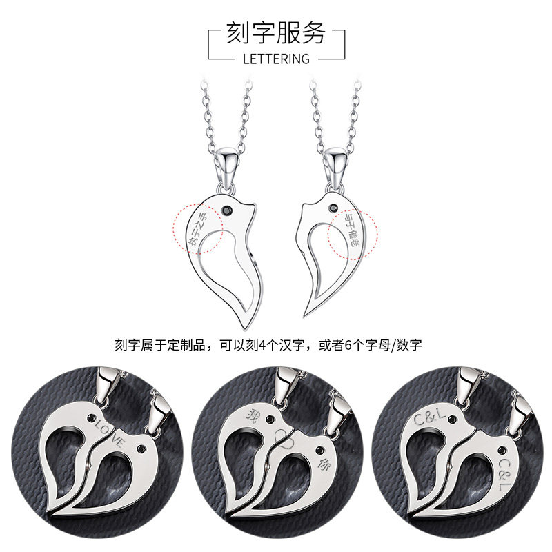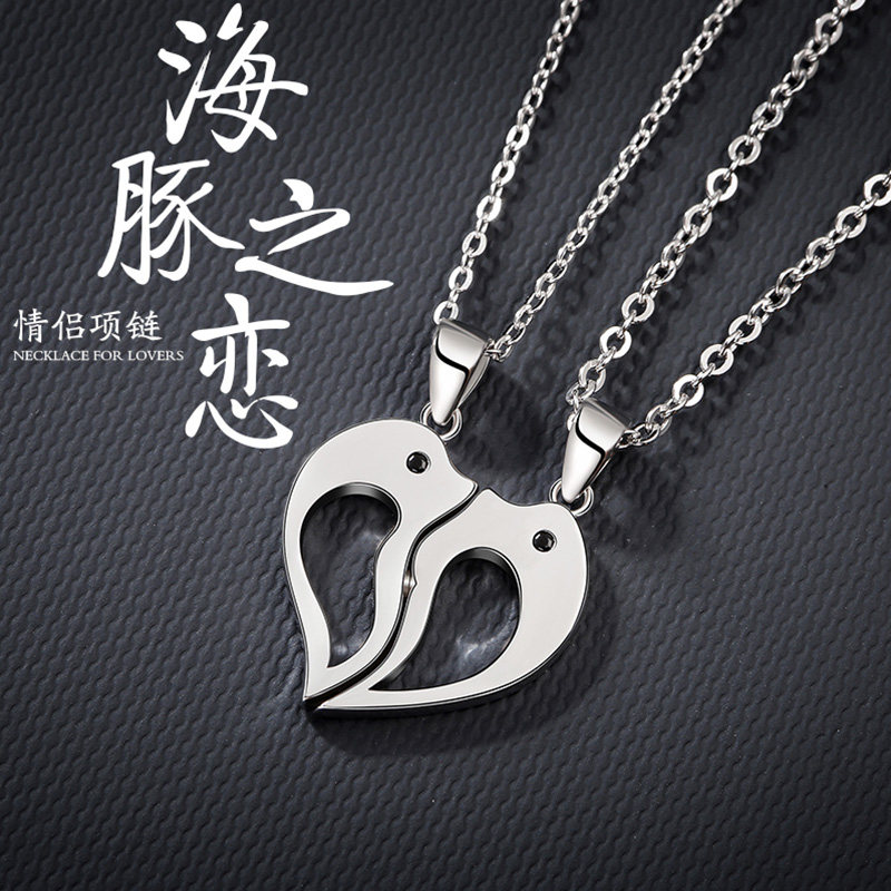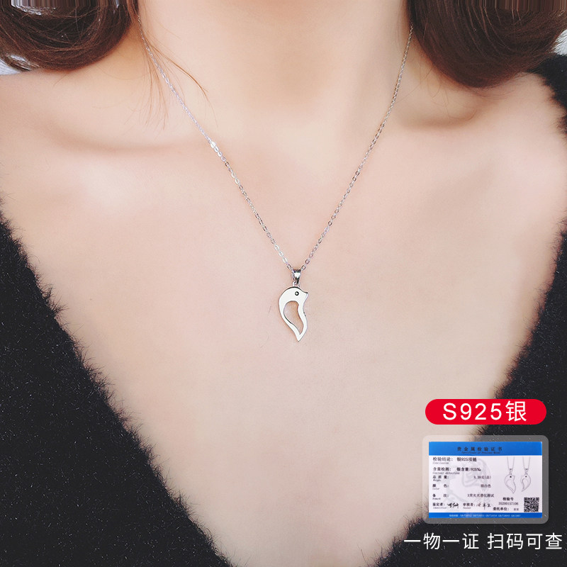 S925 sterling silver men and women dolphin love necklace a pair of splice pendant simple Sen Valentine's Day gift