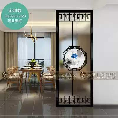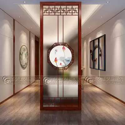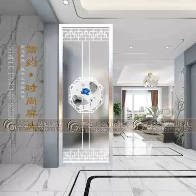 Art glass partition living room screen 3D frosted painted tempered glass double-sided translucent entrance New Chinese style lattice