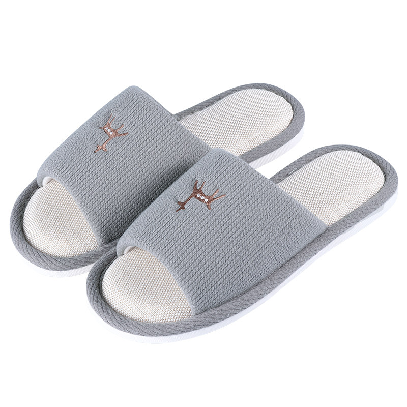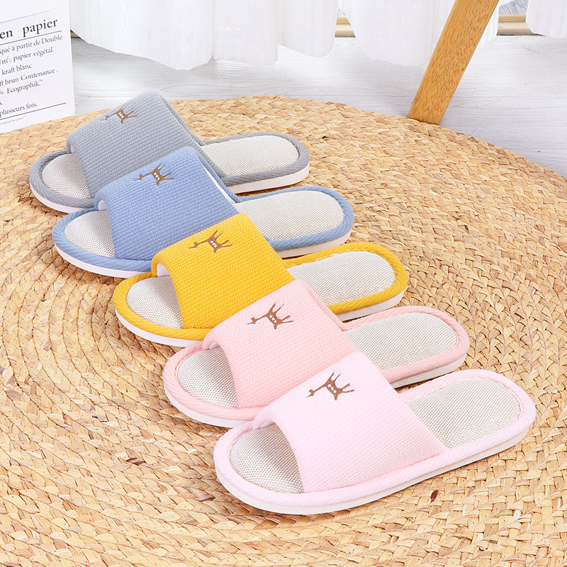 Back Force Linen Cotton Slippers Men's Four Seasons Home Anti-slip Indoor Spring and Autumn Cute Lovers Stay-at-home Fabric Slippers