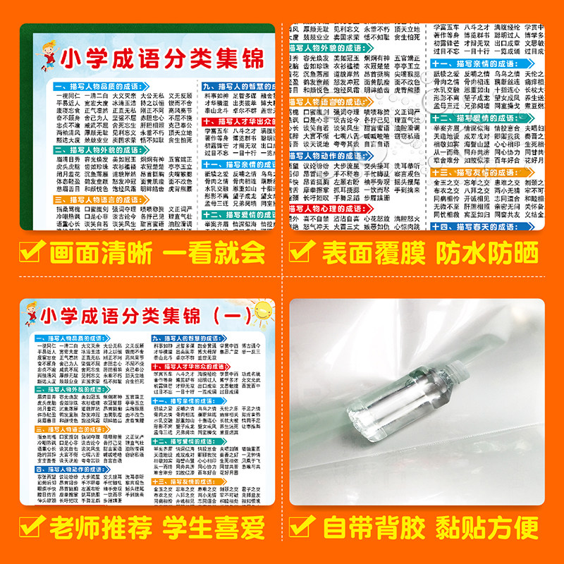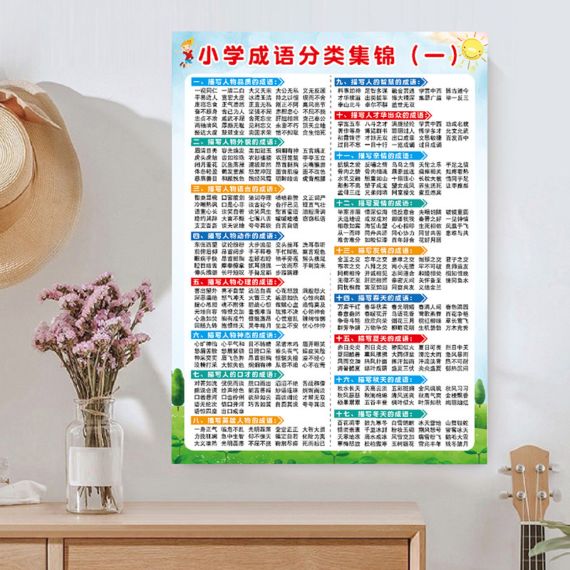Primary school generated language classification Daquan Chinese knowledge classification summary synonyms antonyms common sense AABB wall stickers posters