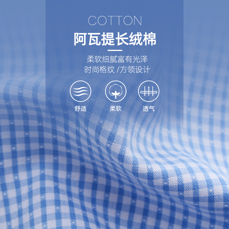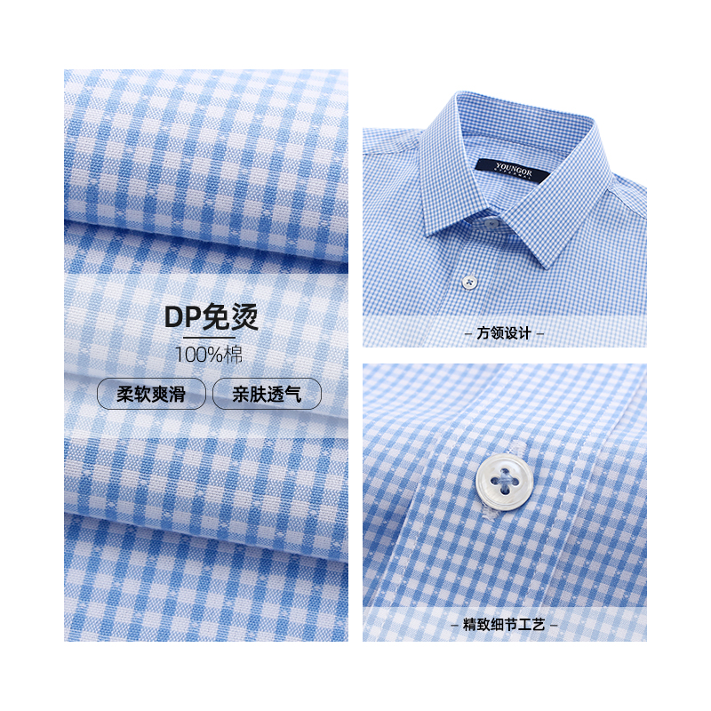 (Plaid DP Free Ironing) Youngor Summer Men's Official Business Casual 100 Count Cotton Thin Short Sleeve Shirts