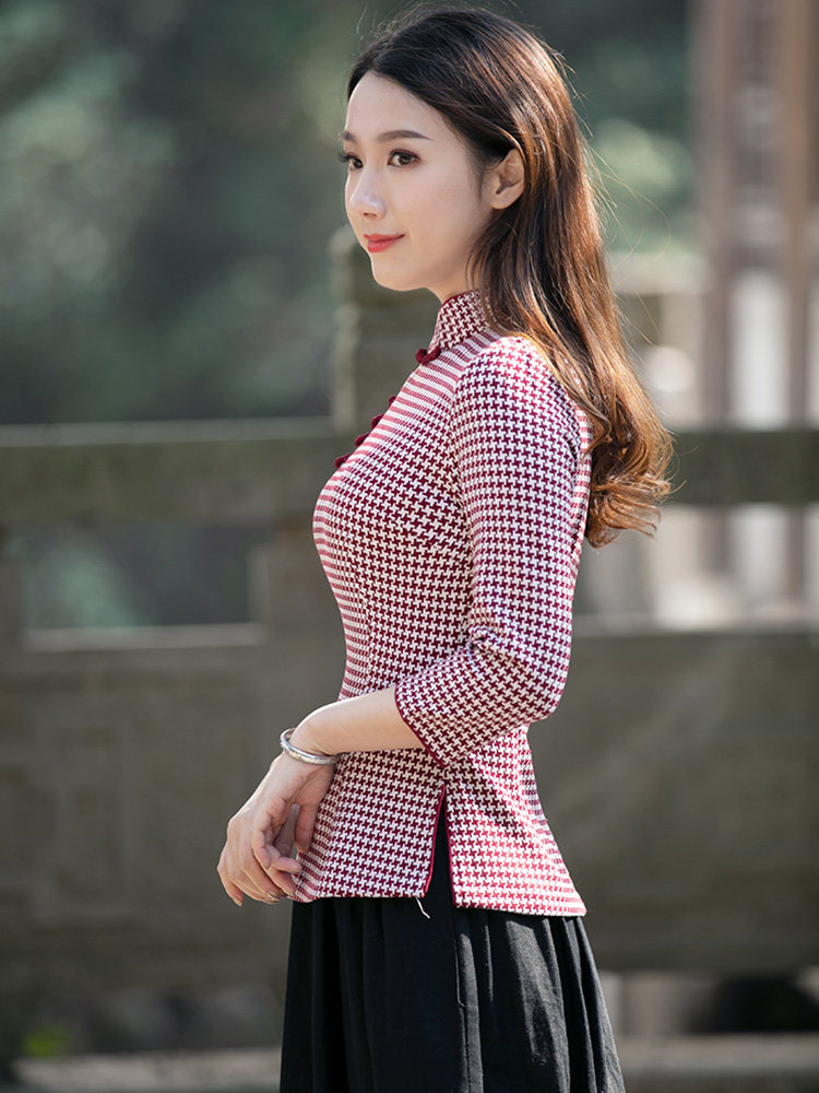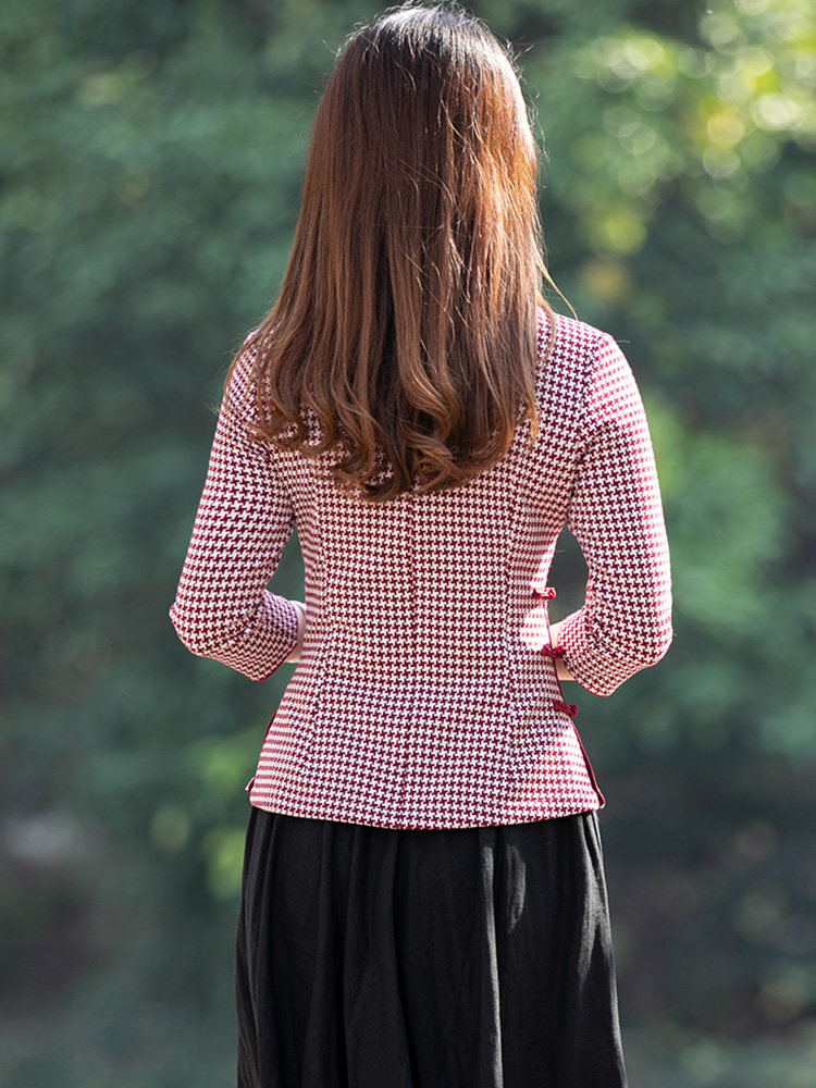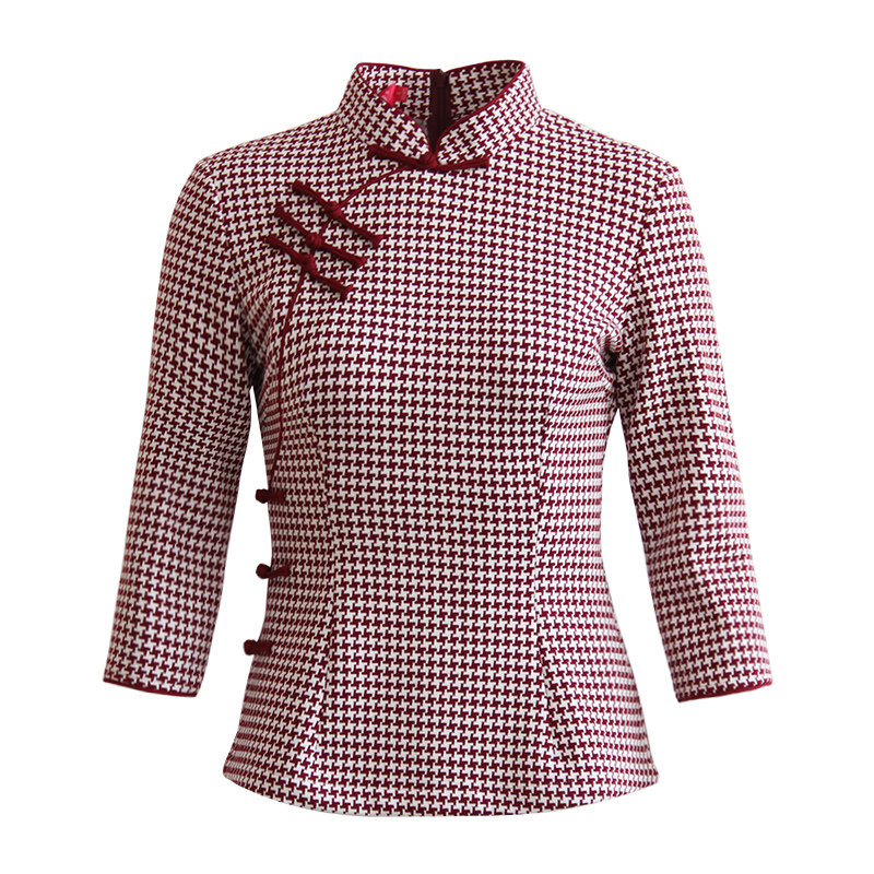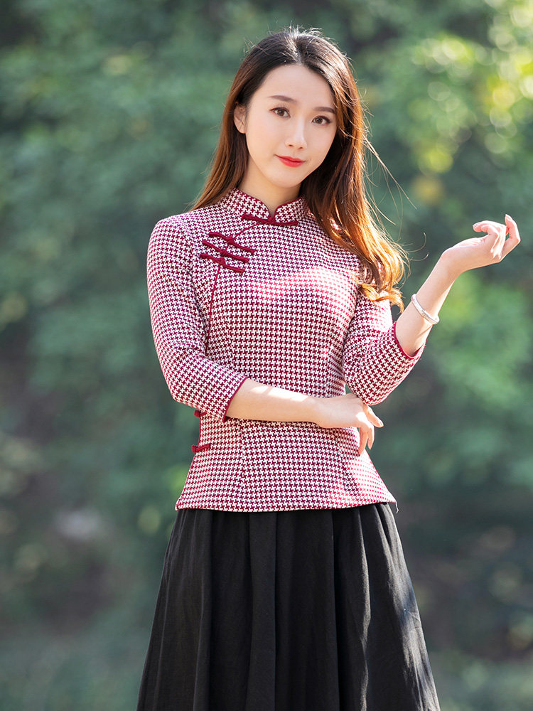 Junya Tang Dress Lady China Wind Qipao Blouse Blouse Red Plaid Short Vegetarian Elegant Woman's Traditional Retro Women