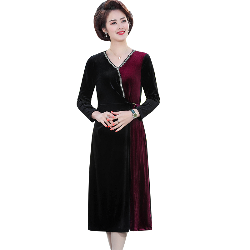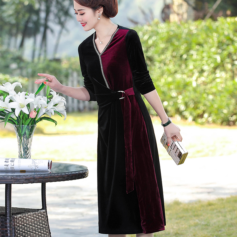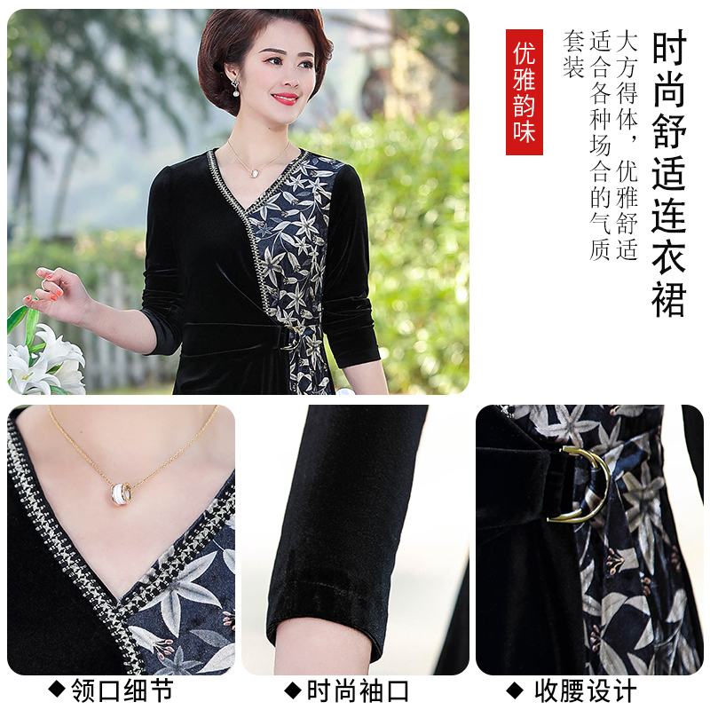 Middle-aged women's spring dress long-sleeved 2021 new 40-50-year-old middle-aged mother spring and autumn skirt gold velvet