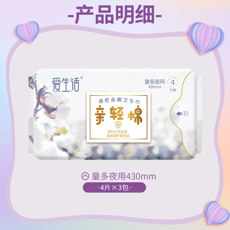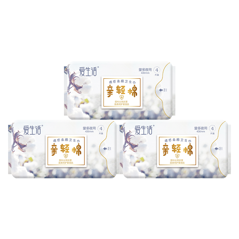 Green leaf love life 4 pieces * 430mm pro light cotton negative ion magnetic power lengthened night with sanitary cotton 3 packaging delivered