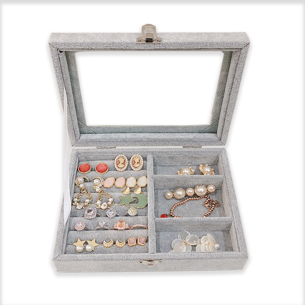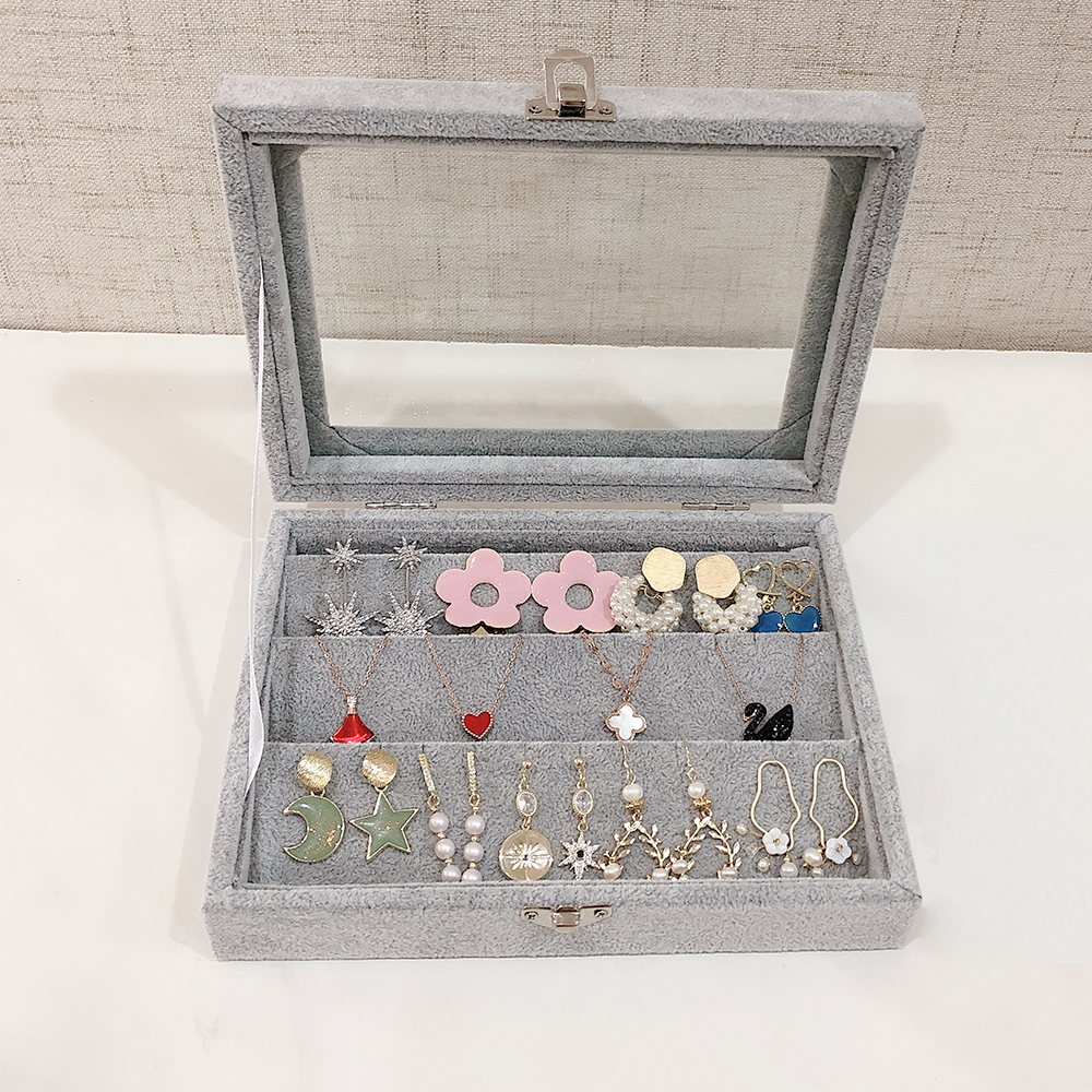 High-grade gray ice flannel jewelry storage box Small ring ear needle earring necklace multi-grid jewelry finishing household