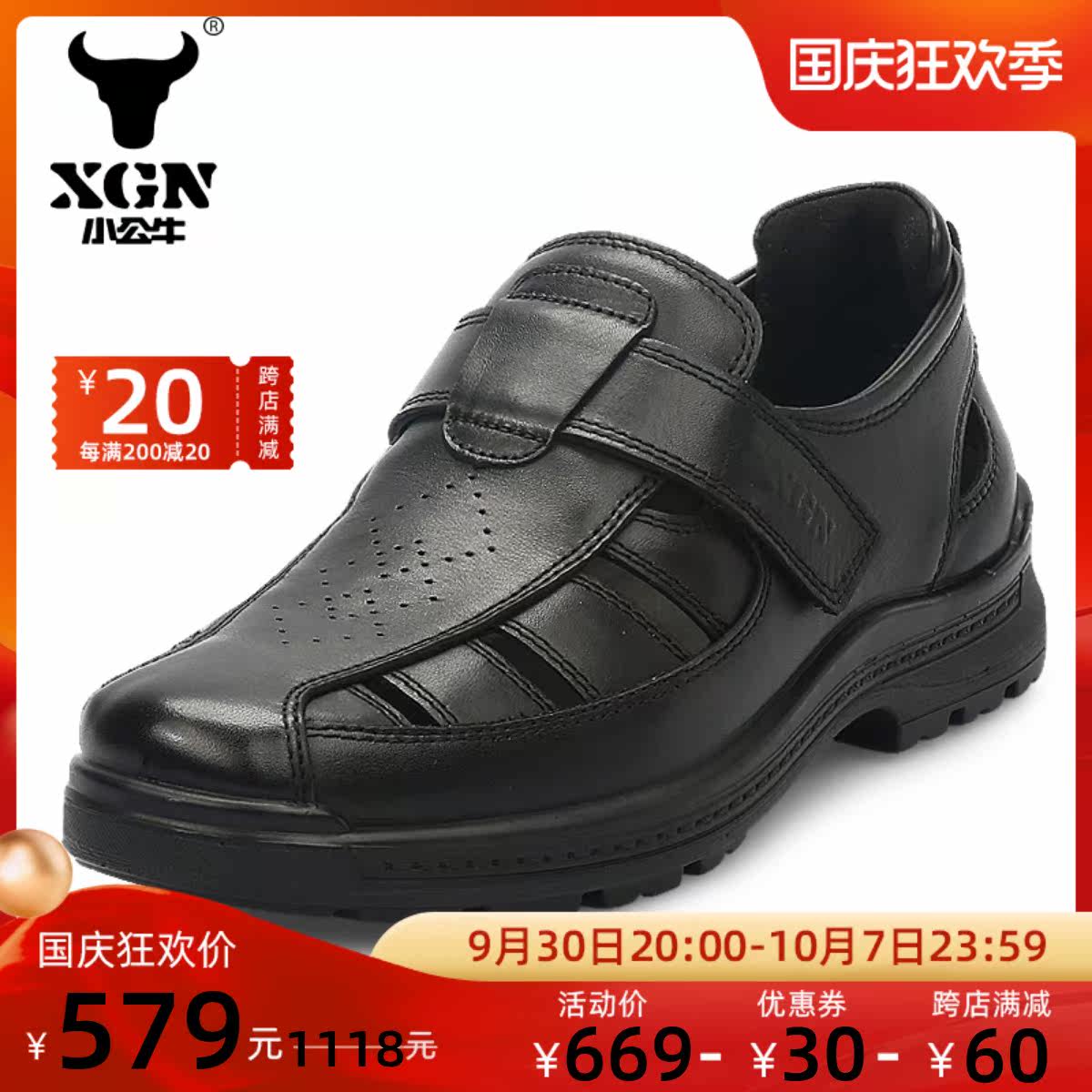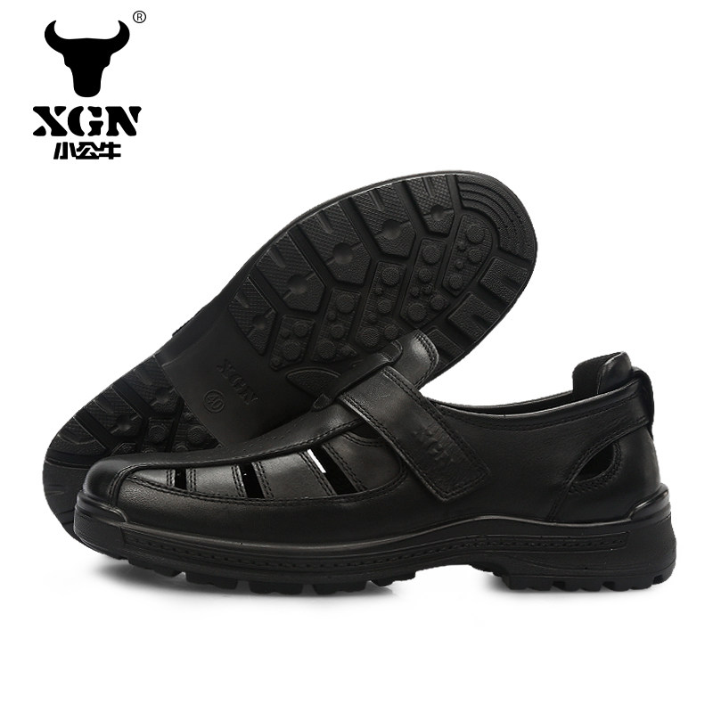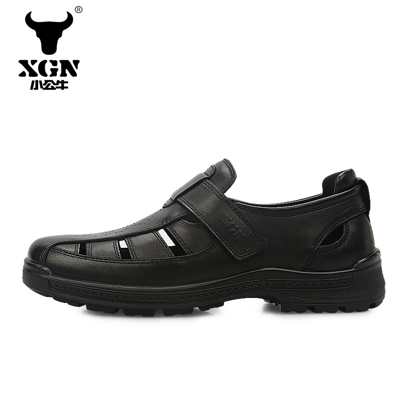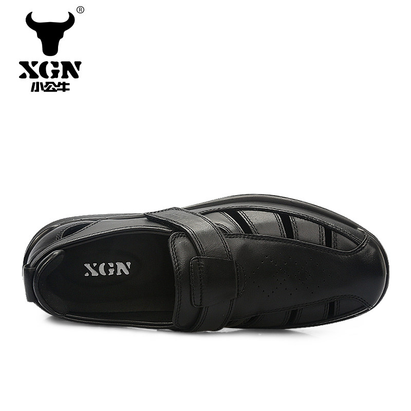 XGN little bull men's shoes business sandals non-slip wear-resistant genuine leather hollow hole shoes British all-match Baotou shoes men