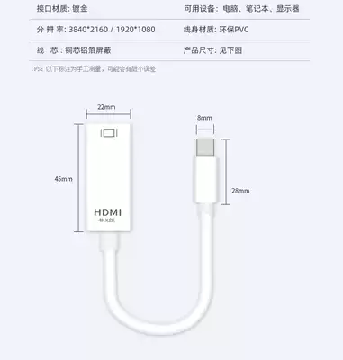 Portable display miniDP to HDMI high-quality cable Small adapter 4K Thunderbolt 2 Microsoft macbook computer