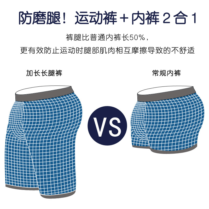Grinding 6 crotch pants Sport Underpants Men's grinding legs Running fitness tight fit lengthened flat pants Long leg ice silk