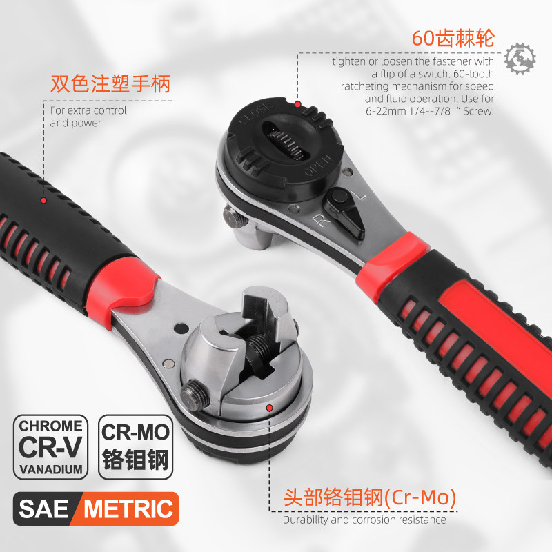 Ratchet wrench multifunction adjustable labor-saving quick wrench 6-22mm Steam Repairing Tool Two-way Thorn Wheel Wrench